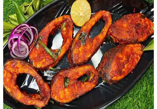 ആവശ്യമായ സാധനങ്ങൾ വൃത്തിയായി വെട്ടിയ മീൻ – 1 കിലോമുളകുപൊടി – 3 ടേബിള്സ്പൂണ്മഞ്ഞള്പൊടി – 1 ടേബിള്സ്പൂണ്കുരുമുളകുപൊടി – 1 ടീസ്പൂണ്ഇഞ്ചി–വെളുത്തുള്ളി പേസ്റ്റ് – 1